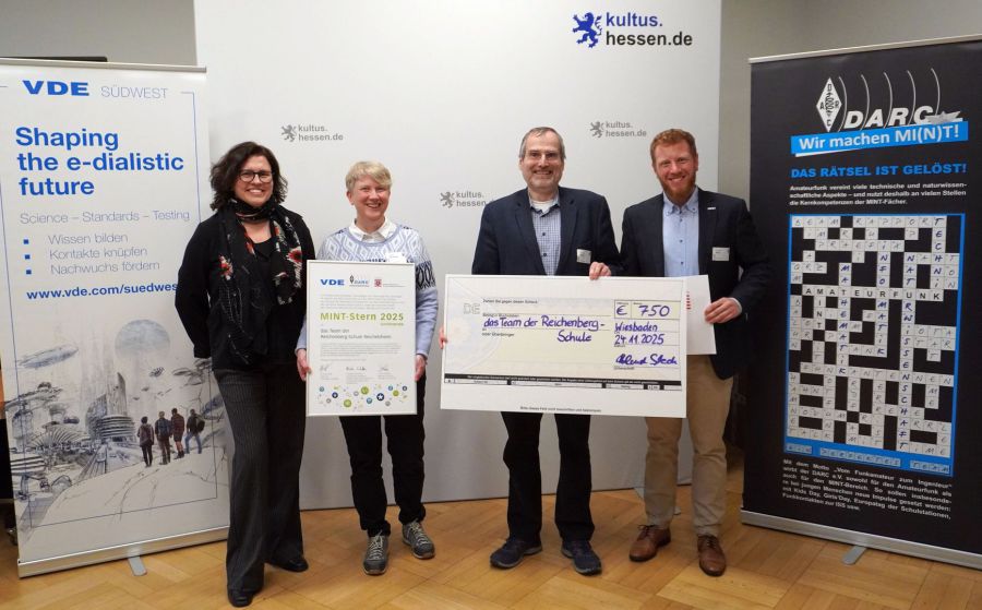 Mit dem MINT-Stern 2025 zeichneten jüngst der Verband der Verband der Elektrotechnik Elektronik Informationstechnik e. V. (VDE) und der Deutsche Amateur-Radio-Club (DARC) e. V. Lehrkräfte und Projekte dreier hessischer Schulen aus Witzenhausen, Wolfhagen und Reichelsheim aus. Die Preise würdigen herausragendes persönliches Engagement zur Förderung der MINT-Fähigkeiten.