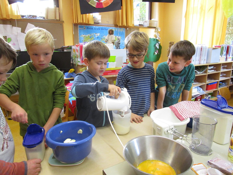 Am Freitag wurde geschnippelt und gerührt. Das war schon ein lustiger Anblick. Ein Polizist schält Bananen, ein Zwerg entkernt Pflaumen, eine Spinne schneidet Äpel, Indianer helfen bei den Kiwis und so einige Prinzessinen sind auch mit von der Partie.